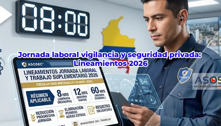 Lineamientos sobre jornada laboral y trabajo suplementario en el sector de vigilancia y seguridad privada Desde la Asociación Colombiana de Seguridad – ASOSEC®, y en atención a la Circular 0040 del 16 de abril de 2026 emitida por el Ministerio del Trabajo, nos permitimos informar a nuestros asociados los lineamientos aplicables al sector en materia de jornada laboral vigilancia y seguridad privada, trabajo suplementario y registro de horas extra, conforme a la normatividad vigente. Régimen aplicable al sector Se mantiene vigente lo dispuesto en el artículo 7 de la Ley 1920 de 2018, según el cual: La jornada ordinaria corresponde...