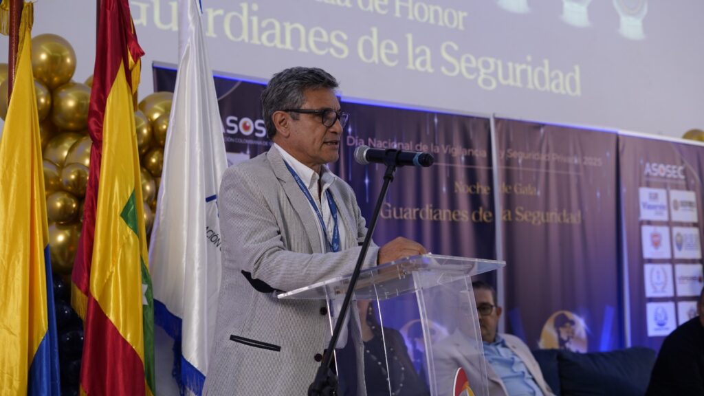 El Dr. Gabriel Berrío Álvarez, presidente de ASOSEC®, también destacó la resiliencia del sector y el compromiso de los guardas como guardianes silenciosos que protegen vidas todos los días.