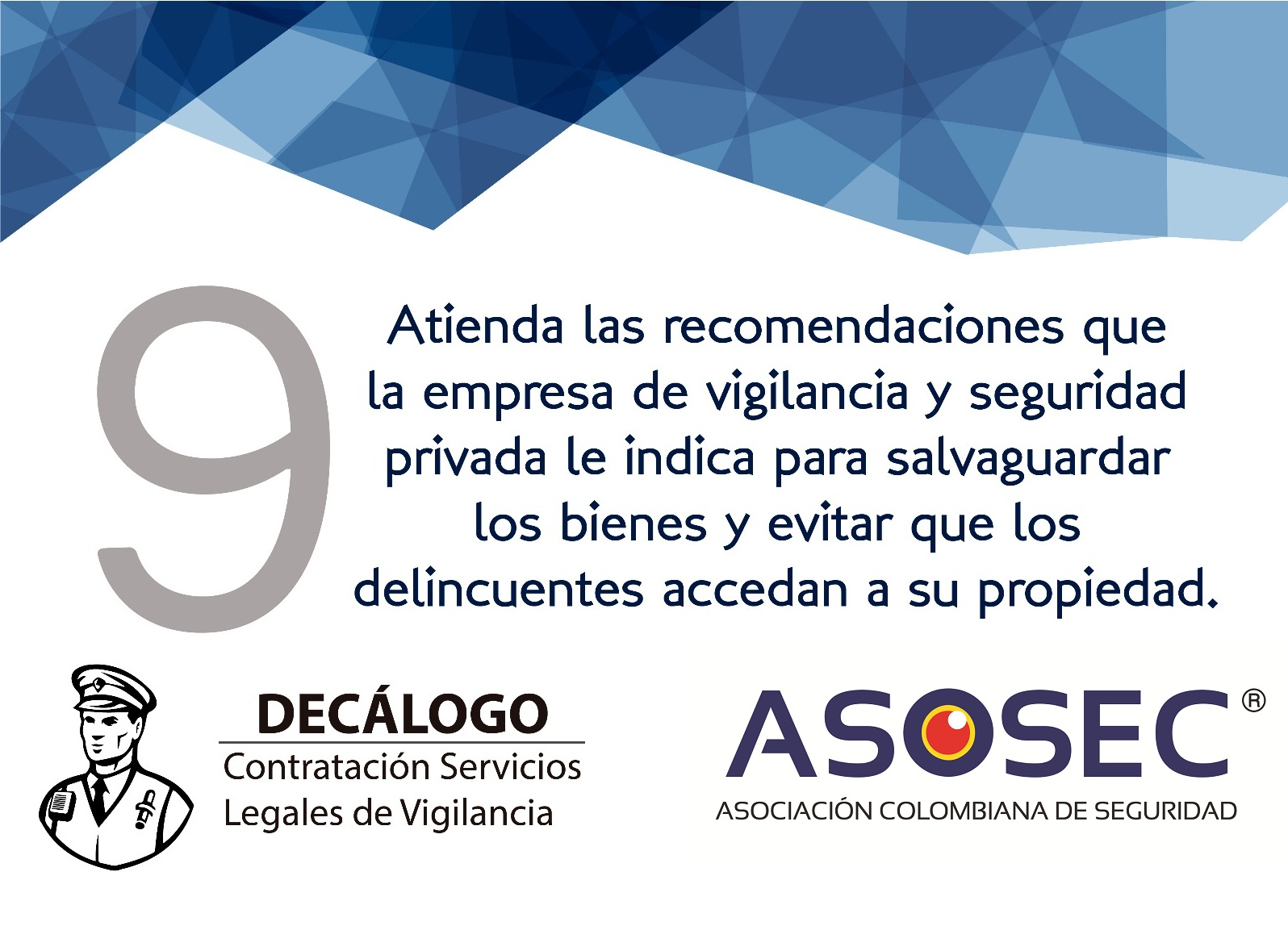 Para una empresa contratar los servicios de vigilancia privada, debe constatarse de su legalidad y vigilancia respectiva, a continuación las recomendaciones de la Superintendencia de Vigilancia y Seguridad Privada y el respectivo decálago para contratación.