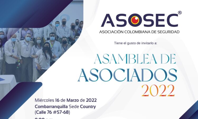 De conformidad con las obligaciones legales, por medio del presente nos permitimos convocarlos a la Asamblea General de Asociados, programada para el día miercoles 16 de marzo de 2022, a las 8:00 a.m. en las instalaciones de Combaranquilla sede country, ubicado en la Calle 76 No. 57 - 61. Agradecemos confirmar asistencia y presentarse puntualmente....