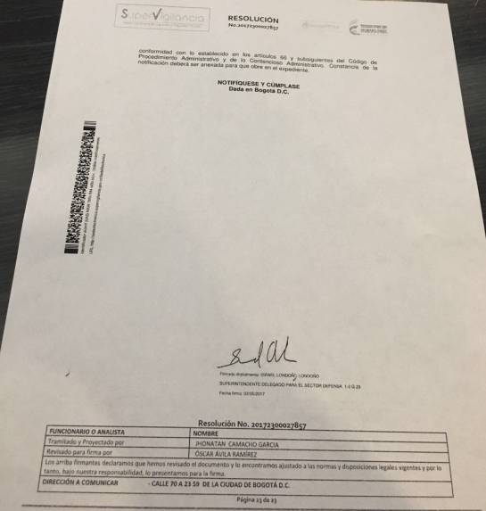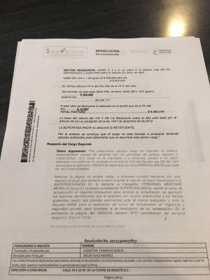 La sanción es de 70 salarios mínimos legales vigentes, es decir, casi 50 millones de pesos. La decisión la tomó la Jefatura Delegada de la Superintendencia, pero la empresa tiene 15 días para apelar la decisión y será el Superintendente de Vigilancia, quien defina el fallo de segunda instancia.