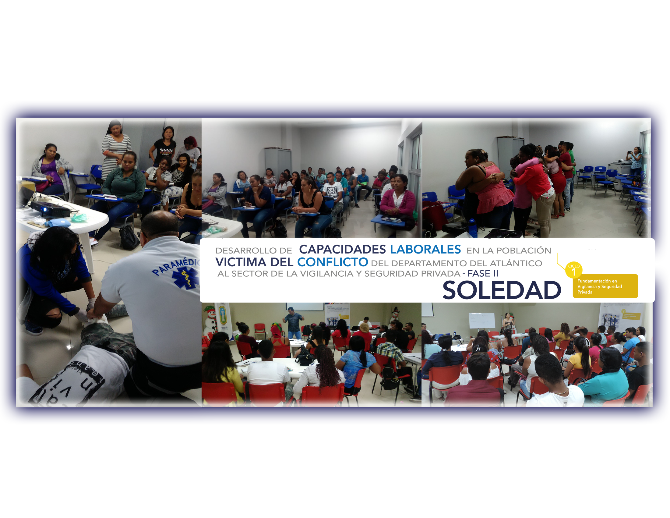 Tal convocatoria se llevó a cabo con el apoyo de los Enlaces Territoriales de los Municipios de Soledad y Malambo, fueron estos quienes lograron el primer contacto con las víctimas para su vinculación al programa, se recibieron 90 solicitudes de aspirantes, de los cuales 64 cumplieron con los requisitos solicitados y de estos 55 se encuentran en formación en el ciclo 1: Fundamentación en Servicios de Vigilancia.