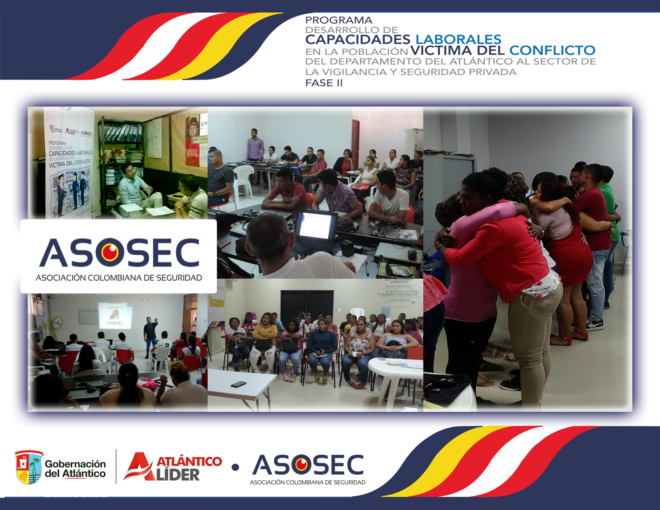 La Asociación Colombiana de Seguridad – ASOSEC® en el marco de los programas que desarrolla anualmente, se encuentra ejecutando desde el mes de diciembre de 2018 el Programa “Desarrollo de Capacidades Laborales en la Población Víctima del Conflicto del Departamento del Atlántico al Sector de la Vigilancia y Seguridad Privada” en alianza con la Gobernación del Atlántico; dicho programa en esta, su segunda fase, busca lograr nuevamente la preparación, formación profesional y posterior vinculación laboral de las víctimas del conflicto al sector de la vigilancia y seguridad privada como se logró en la primera fase desarrollada durante el año 2017.